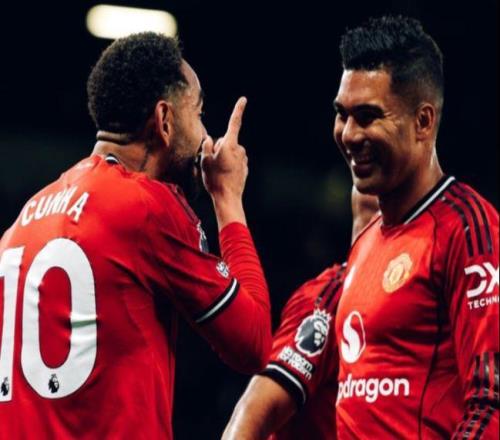 曼联42布莱顿取三连胜姆伯莫双响卡塞米罗传射库尼亚破门