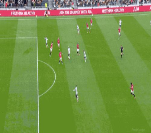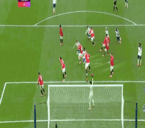 顶住了热刺的狂轰滥炸,第69分钟,阿玛德·迪亚洛送出精准长传,B费的停球世界级,但帕利尼亚迅速赶到,B费仓促出脚,放了高射炮。