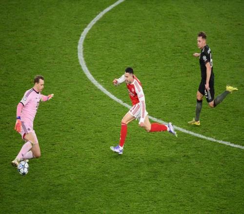 尽管6分钟后特罗萨德因伤退赛,但阿森纳下半场表现堪称完美。阿尔特塔的换人立竿见影,第68分钟卡拉菲奥里、马丁内利出场,1分钟后意大利右后卫前插禁区下底传中,助攻马杜埃凯再次领先。第76分钟诺伊尔冲出禁区拦截马丁内利的单刀球扑空,阿森纳主场3比1终结拜仁赛季18场不败,以近乎完美表现登顶欧冠。18天内,诺伊尔两次致命失误,先后断送了拜仁赛季16场连胜和18场不败两大纪录。而诺伊尔职业生涯欧冠10次失误导致失球,高达4次是在阿森纳客场。
