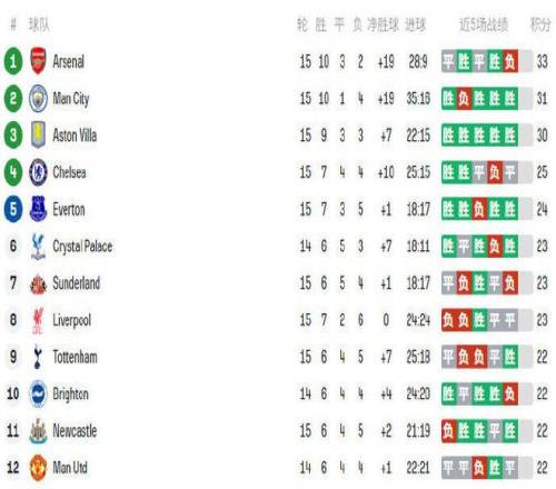 北京时间12月7日,英超第15轮先赛7场。领头羊阿森纳翻车输球,而切尔西和利物浦延续低迷不胜,曼城成为最大赢家,豪取3连胜后距榜首分差缩小至2分。