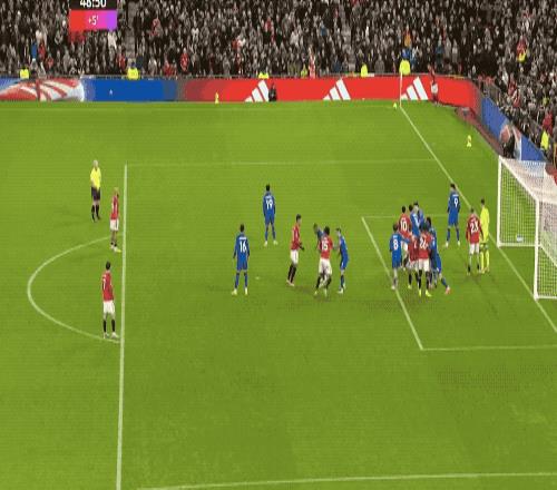 上半场补时阶段,曼联获得角球,B费将球开出,约罗做了一个完美的挡拆,卡塞米罗后点头球破门。